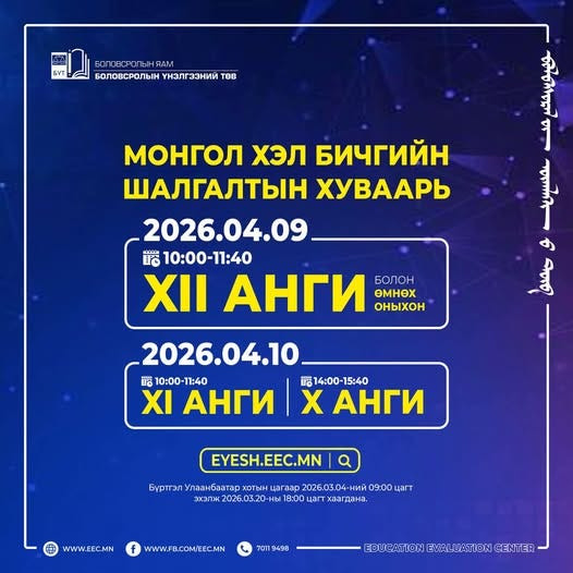 Монгол хэл бичгийн шалгалт дөрөвдүгээр сарын 9, 10-нд болно