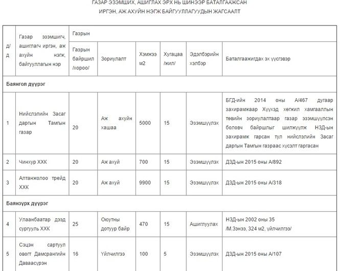 Нийслэлийн Засаг даргын захирамжийн дагуу 13 иргэн, аж ахуйн нэгж, байгууллагын газар эзэмших, ашиглах эрхийг шинээр баталгаажуулав.