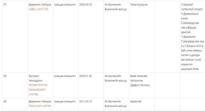 “Панам паперс”-ын дуулианыг дагаад “Оффшор бүсэд компаниа бүртгүүлснээр орлогоо татвараас нуух зорилготой байсан” гэдэг үндэслэлээр олон ч бизнесмэнүүд ёс зүйн эчнээ шийтгэл амсч эхэллээ. Тэдгээр Монголын бизнесмэнүүдийн дунд Чойндонгийн Давааням хэмээх нэр бичигджээ. Түүний нэр дээр Wuxian technology Limited гэх default болсон компани, Label light Ltd хэмээх татан буугдсан компани оффшор бүсэд бүртгэлтэй байх аж.